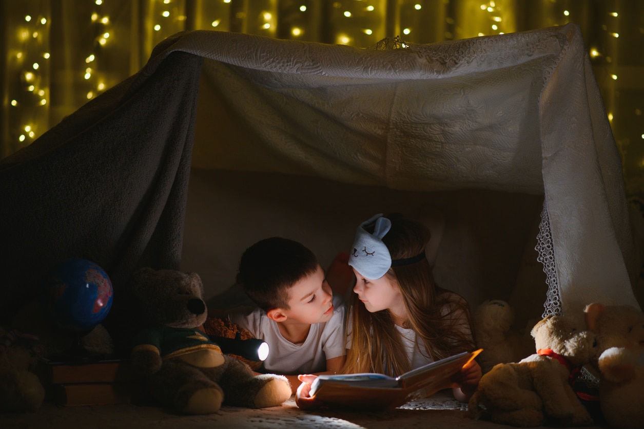 1. Blanket Fort Reading Nook: Transform your living room into a cozy reading haven, encouraging language and imagination skills.